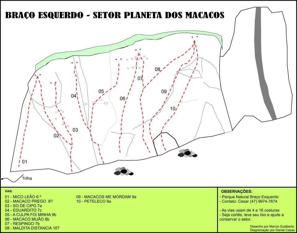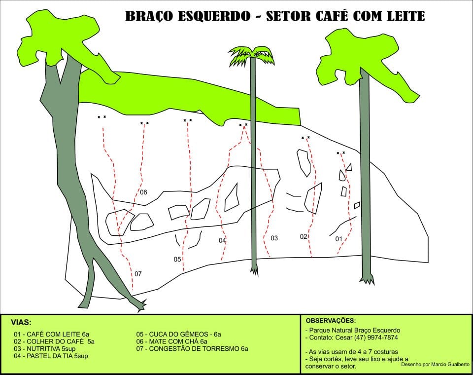 Croqui escaladas em Corupá em Santa Catarina.