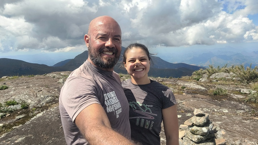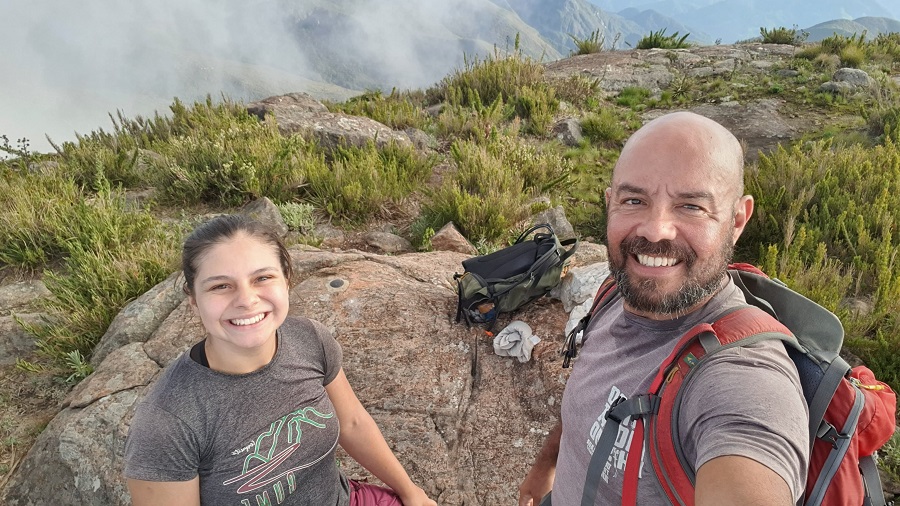 Cansados, com fome, mas muito felizes depois de 11 horas de caminhada entre as montanhas fantásticas do Caparaó. Uma baita ideia de passeio para um casal montanhista em plena lua de mel.