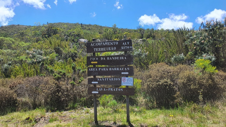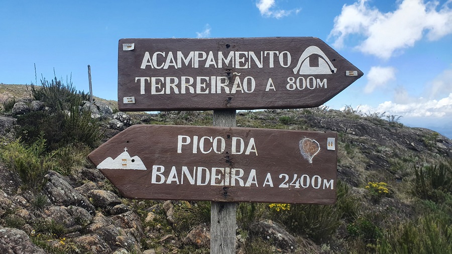 Na descida do Cristal existe um caminho à esquerda, marcado por totens, que segue em curva de nível e contorna até reencontrar a trilha principal bem abaixo do Pico da Bandeira. Isso evita ter que subir tudo de novo.