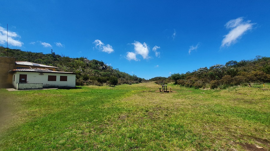 Por volta das 10h40 chegamos ao Terreirão, local de camping com boa estrutura, banheiros e área de cozinha. Comemos alguma coisa e pegamos mais água para o próximo trecho.